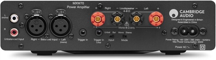 Die MXW70 verfügt über eine beeindruckende Stereoleistung von 70 Watt (an 8 Ohm) pro Kanal. Mit einem einfachen Schalter kann die Endstufe vom Stereo- in den Mono-Modus umgeschaltet werden, wodurch eine beeindruckende Leistung von 250 Watt zur Verfügung steht.