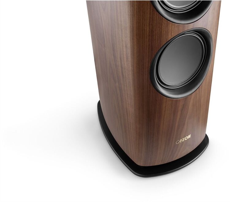 Die Gehäuse der Canton Reference 2 sind nach den neuesten akustischen Erkenntnissen frei von Kanten gestaltet. Ihre elegante Form folgt der Funktion, wodurch ein Lautsprecher mit bemerkenswerten Eigenschaften entsteht: neben dem modernen Design ist er zudem äußerst stabil und bietet eine perfekte Grundlage zur schalloptimierten Abstrahlung. Die Verarbeitung der Gehäuse ist von höchster Qualität und ermöglicht die ästhetische Integration in jedem Wohnambiente. Vier Lautsprecherchassis arbeiten in einem 3-Kammern-System, das für jeden Zweig der 3-Wege-Lautsprecherkonstruktion perfekt dimensionierte Volumina anbietet. Die Doppelbassbestückung mit 219-mm-Tieftönern sorgt in Verbindung mit dem optimierten Abstrahlungsverhältnis des Bass-Guide der neuesten Generation für enormen Tiefbass und erlaubt dabei zudem eine flexible Aufstellung der Reference 2 im Hörraum. Der 174-mm-Mitteltöner, der bewusst oben im Lautsprecher angeordnet ist, sorgt für eine authentische, lebendige Wiedergabe von Stimmen. Optisch wie akustisch die ideale Ergänzung ist der leistungsfähige BC-Hochtöner mit 25-mm-Hochtonkalotte aus schwarzer Aluminiumoxidkeramik.