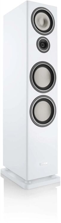 Die Townus 100 Modelle sind schlanke 3-Wege-Standlautsprecher, die durch ihre harmonischen Proportionen und ihre zurückhaltende Eleganz überzeugen. Mit ihrem vorzüglichen Finish der hochwertig verarbeiteten Gehäuse sind sie ein Blickfang in jedem Raum. Die Townus 100 Lautsprecher zeichnen sich durch abgerundete Gehäusekanten aus, die nicht nur die Schallabstrahlung optimieren, sondern ihnen auch einen modernen und eleganten Look verleihen. Die schraubenlose Integration der vier Treiber in die 230 Millimeter breite Schallwand erfolgt mithilfe hochwertiger Aluminiumringe, die im Seamless-Diamond-Cut Verfahren gefertigt werden. Dadurch entsteht eine nahtlose und ästhetisch ansprechende Optik. Die Townus 100 Modelle bieten weitere optische Highlights wie großzügig abgerundete, schalltransparente Stoffblenden, die magnetisch auf den Schallwänden haften und schlanke Sockel mit vier höhenverstellbaren Metallfüßen, die für eine solide Basis der Standlautsprecher sorgen. In den Gehäuseböden versteckt eingebaut, regen die großen Bassreflexkanäle in Downfire-Anordnung den Hörraum akustisch gleichmäßig und effektiv an.