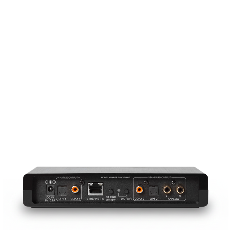 - Anschlüsse Ausgang 1: 1 x Optisch (bis zu 96 kHz / 24-Bit), 1 x Koaxial (192 kHz / 24-Bit)
