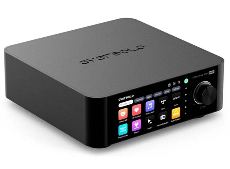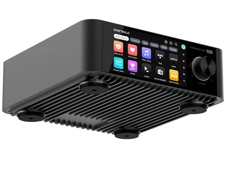 Eversolo play verwendet eine CNC-gefertigte Unibody-Konstruktion aus einer hochfesten Aluminiumlegierung, die die strukturelle Steifigkeit beibehält und gleichzeitig gegen externe elektromagnetische Störungen abschirmt, um eine reine Audiosignalübertragung zu gewährleisten. Sein Sockel ist mit einem vollflächigen Kühlkörper ausgestattet, der die Temperaturen der internen Komponenten effektiv reduziert und die Stabilität von PCBs und Chips gewährleistet. Das auffälligste Merkmal ist das lebendige 5,5-Zoll-Display mit extrem niedriger Latenzzeit und einer neu gestalteten Benutzeroberfläche. Eversolo hat seine Benutzeroberfläche auf der Grundlage des ursprünglichen Schnittstellendesigns und des Nutzerfeedbacks aktualisiert und die Gerätesteuerung in sechs Dimensionen vereinfacht: "Musikdienste, Funktionen, Apps, Connect, Cloud und Einstellungen", was ein revolutionäres Interaktionserlebnis mit Musik ermöglicht.