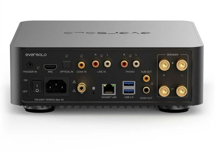 Eversolo play integriert nahtlos Verstärkung, DAC und Streaming in einem einzigen Gerät, so dass Benutzer verlustfreien Klang genießen und mühelos ein Heim-HIFI-Musiksystem aufbauen können. Ausgestattet mit dem leistungsstarken AK4493 DAC-Chip erreicht er einen SNR =109dB (A-wt) und einen extrem niedrigen THD von 0,0037%. Der Class-D-Verstärker liefert eine robuste Ausgangsleistung von 60 W an 8 O und 110 W an 4 O und treibt damit mühelos eine Vielzahl von Lautsprechern an, um jedes nuancierte Detail von Live-Auftritten wiederzugeben.