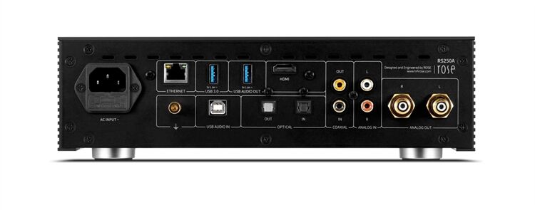 Dank ROSE OS stehen vielseitige Dienste wie TIDAL, Qobuz, Apple Music, Spotify Connect, RoseTube, Internetradio, Roon Ready und Audirvana zur Verfügung. Darüber hinaus ermöglicht der RS250A Ultra HD 4K Videowiedergabe via HDMI sowie CD-Ripping und -Wiedergabe mit einem externen Laufwerk.