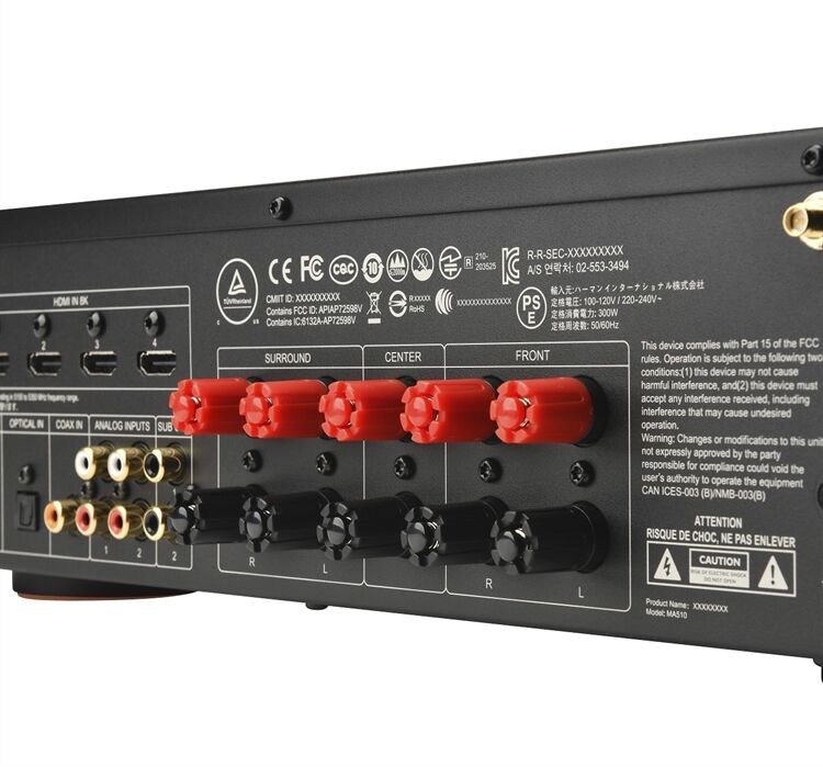 • Dimensions incl. feet and speaker terminals (H x W x D): 4.3” x 17.0” x 13.7”