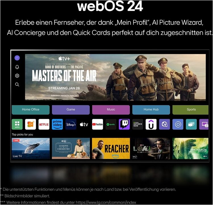 Die praktische Magic Remote-Fernbedienung und die optimierte webOS24 Oberfläche machen das Entertainment-Erlebnis komplett.