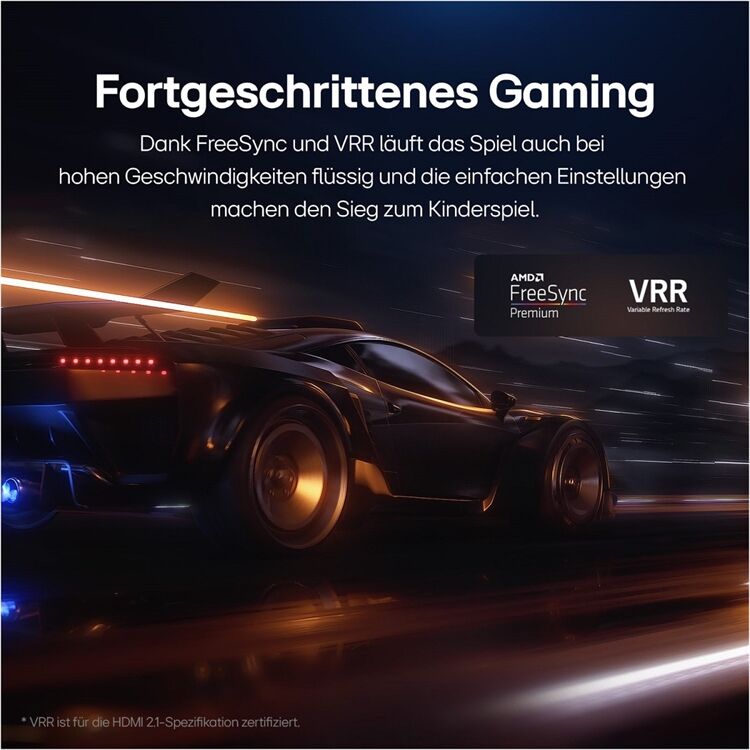 Der Filmmaker Mode™ stellt Filme so dar, wie es Filmemacher gedacht haben. Und mit einem flüssigen Gameplay mit bis zu 4K @ 120 Hz und AMD FreeSync™ macht das zocken auf dem Riesenbildschirm besonders viel Spaß.