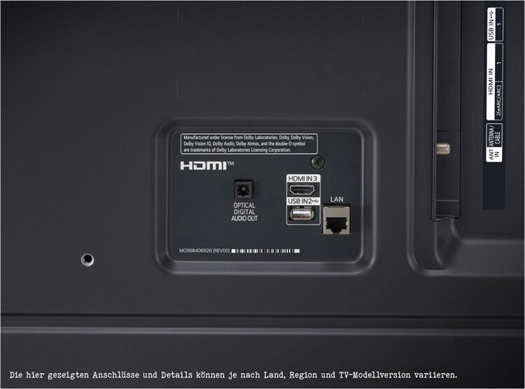- DVB-T2/-C/-S2 Single Tuner, 3x HDMI 2.1, 2x USB, CI+, Digitaler Audioausgang (optisch), LAN (Ethernet), Wi-Fi 5 (802.11ac) & Bluetooth 5.1 integriert