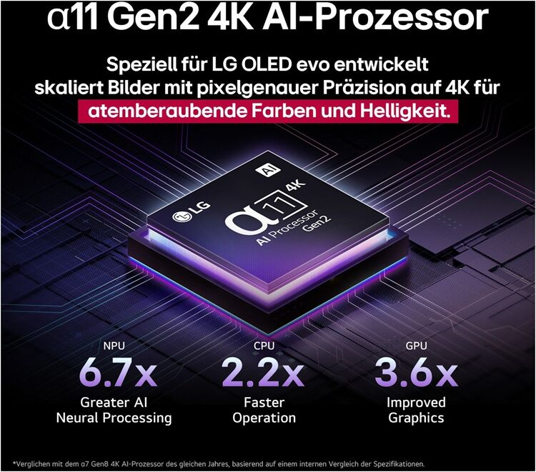 - a11 Gen2 4K AI-Prozessor mit zahlreichen AI-Funktionen optimiert automatisch Bild und Sound
