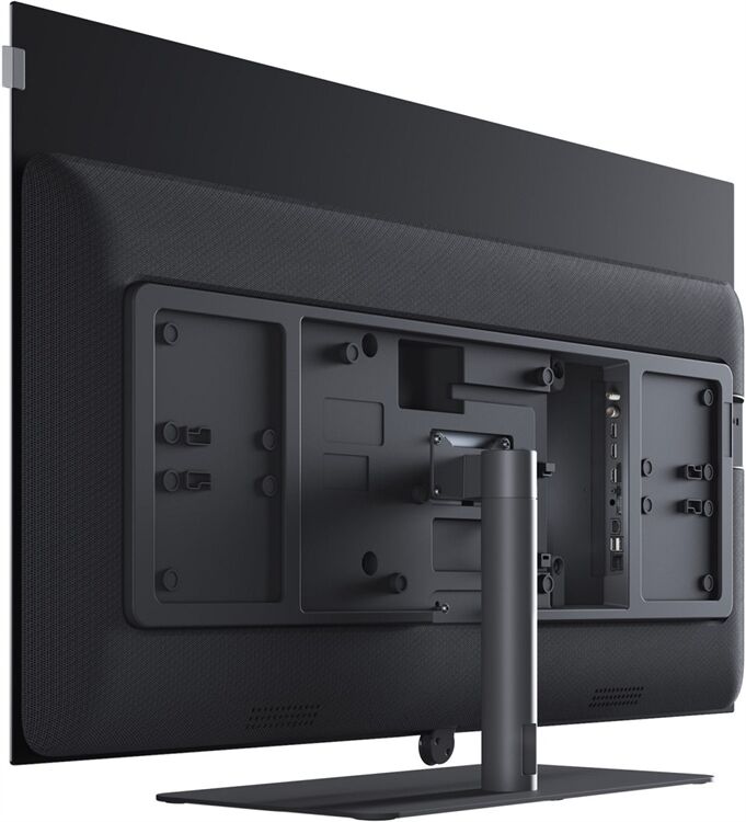 Die innere mechanische Konstruktion ist ebenso clever wie robust, mit soliden VESA-Domen, die in der Metallstruktur des TV verankert sind, und einer massiven Tischplatte inklusive drehbarem Standfuß mit durchgängig verdeckter Kabelführung.