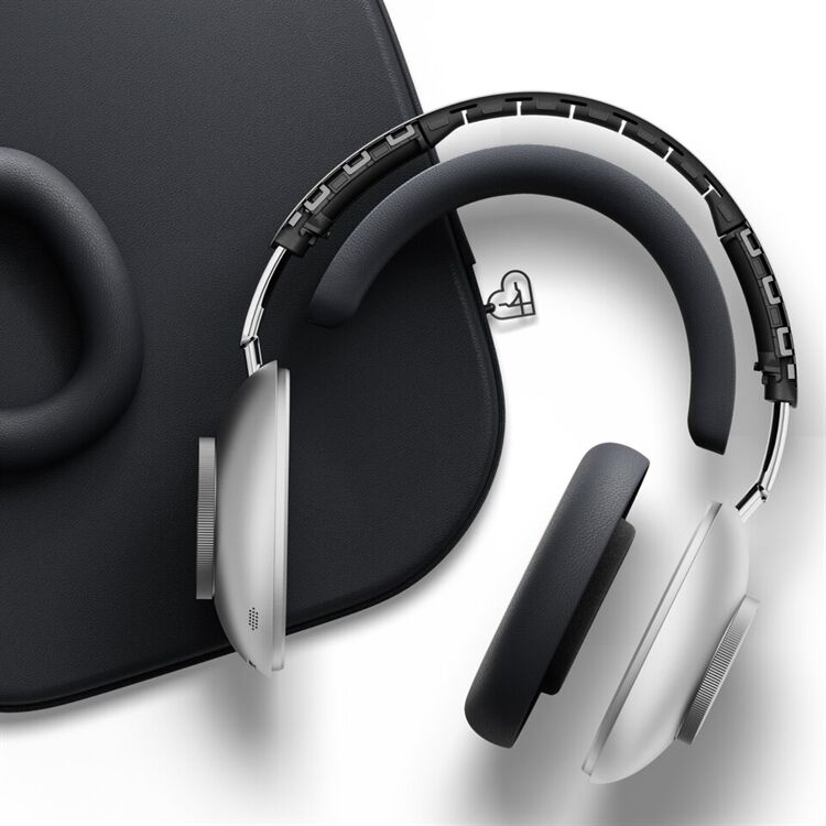 Personalisierung & Komfort: Austauschbare Ohr- und Kopfpolster in drei Farben (Moonlight Beige, Midnight Blue, Horizon Bronze), gepaart mit ergonomischem Design und edlen Materialien wie Lammleder und eloxiertem Aluminium.