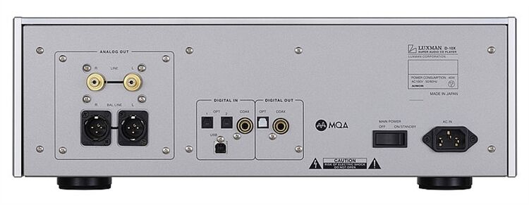 Der D-10x verwendet neue, große Leistungstransformatoren (27% mehr Kapazität im Vergleich zu herkömmlichen) und unabhängige Regler für jede Schaltung. Das traditionelle, hochstabile Netzteil von LUXMAN verfügt über Filterkondensatoren mit großer Kapazität. Das Gehäuse schützt vor Magnetfeldern, Erdungsimpedanz und digitalem Rauschen. Luxman setzt auf den idealen Signalweg: Lesen ⇒ Umwandlung ⇒ Ausgang; zur Vermeidung von Rauschen und Vibrationsquellen. Der “LUXMAN Audio Player”, ermöglicht eine einfache und bequeme PC / Mac-Steuerung.