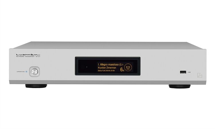 Das USB-Subsystem des NT-07 unterstützt Abtastfrequenzen von bis zu 768kHz/32bit für PCM-Dateien und 22,5MHz/1bit DSD-Daten, der optische/koaxiale Ausgang ermöglicht die Wiedergabe von 192kHz/24bit PCM. Auch eine eingebaute Core-Decodierungsfunktion für Tonquellen im MQA-Format mit drei wählbaren Modi, "off", "core decoding" und "pass-through", je nach angeschlossenem D/A-Wandler ist verfügbar. In der Mitte der Frontplatte befindet sich ein großes, leicht ablesbares, hochauflösendes EL-Display, das eine Vielzahl von Informationen wie den Namen des gerade gespielten Titels, den Namen des Interpreten, die verstrichene Zeit und das Audioformat dieser ausgewählten Quelldaten anzeigt.