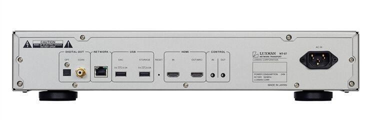 LUXMANs erster Netzwerk-Transporter NT-07. Der NT-07 kombiniert die neueste digitale Audiotechnologie mit dem Know-how von LUXMAN und nutzt einen durch und durch klangorientierten Ansatz, um eine Vielzahl von verfügbaren Quellen mit hervorragender Klangqualität und einer anspruchsvollen, aber dennoch komfortablen Betriebsumgebung zu ermöglichen. Zusätzlich zu den digitalen USB-Audio- und HDMI-Anschlüssen bietet der NT-07 komfortablen Zugang zu den beliebten Musik-Streaming-Diensten und den Zugriff auf NAS-Server und angeschlossen Speichern, die dem Hörer eine neue Dimension atemberaubender Audioqualität eröffnen. Der NT-07, der konsequent auf höchste Audio-Wiedergabequalität optimiert wurde, bietet allen Musikliebhabern mit hochwertigem D/A Wandler ein zukunftsweisendes Musikerlebnis.