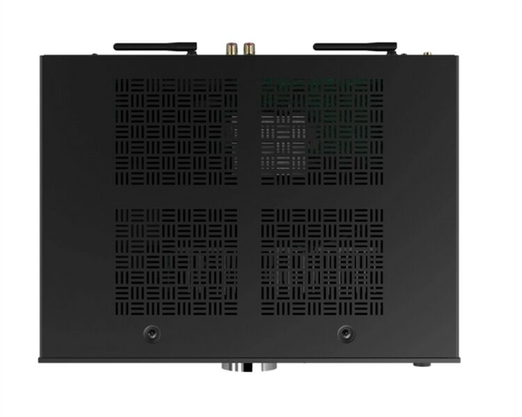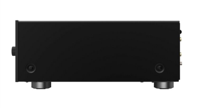Ein dreistufiger invertierter Darlington-Verstärker sorgt für kontrollierte Leistung mit wenig Verzerrungen. Die DIDRC-Schaltung (Dynamic Intermodulation Distortion Reduction Circuitry) reduziert hochfrequentes Störrauschen – das Ergebnis ist klarer, ruhiger Klang. Ein lüfterloses Design, ein hochwertiger 32-Bit/768-kHz DAC sowie 10000-µF-Kondensatoren und ein massiver Alu-Kühlkörper liefern souveräne Dynamik.