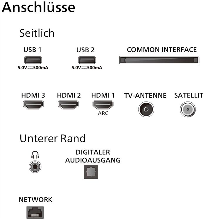 - DVB-T2/-C/-S2 Triple Tuner, 3x HDMI, 2x USB, CI+, Digitaler Audio-Ausgang (optisch), Ethernet-LAN, WiFi 802.11n, 2 x 2 Singleband integriert