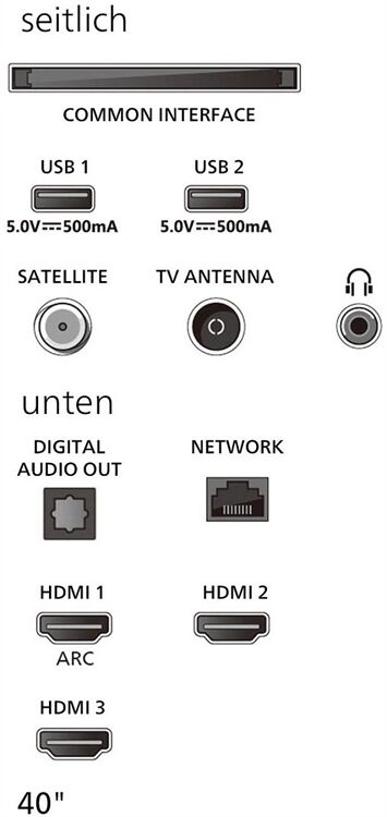 - DVB-T2/-C/-S2 Triple Tuner, 3x HDMI, 2x USB, CI+, Digitaler Audio-Ausgang (optisch), LAN, WiFi 802.11n integriert