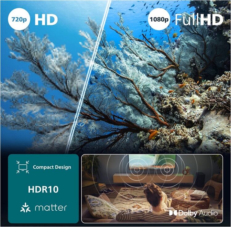 Auf die Größe kommt es an. Dank seines kleinen, leichten und kompakten Designs passt dieser Smart TV perfekt in jeden Raum und fügt sich zu Hause wie auch unterwegs wunderbar ein.