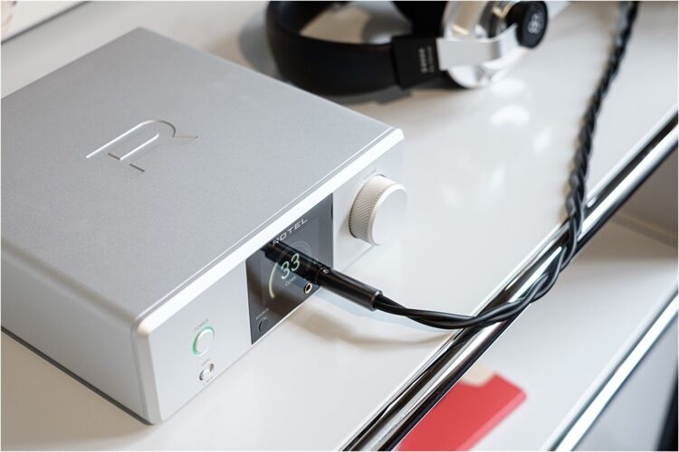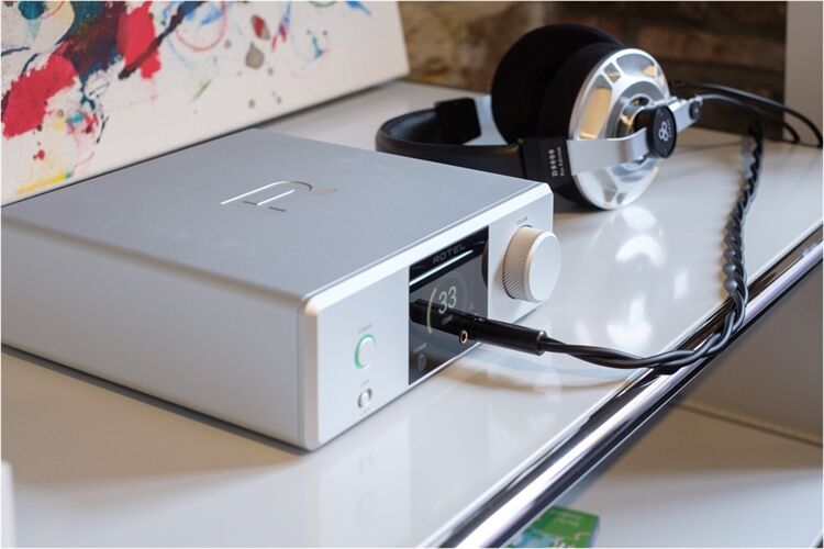 Die vom Benutzer wählbaren variablen Kopfhörerverstärkungspegel „Hoch“, „Mittel“ und „Niedrig“ gewährleisten die Unterstützung von Kopfhörern mit niedriger und hoher Impedanz Kopfhörer-Vollverstärker DX-3 über symmetrische 4,4-mm- und unsymmetrische 6,35-mm-Kopfhöreranschlüsse auf der Frontplatte. Die Lautstärkeregelung wird durch einen audiophilen analogen Controller vom Typ NJW1195A gesteuert, der feinfühlige Schritte von bis zu 0,5 dB ermöglicht.