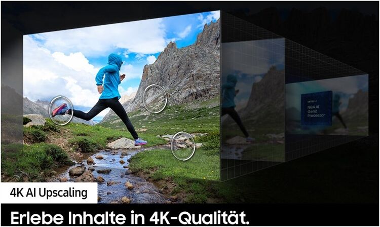 Die Technologie 4K AI Upscaling die von 20 neuronalen AI-Netzwerken unterstützt wird, wandelt Inhalte in eine Auflösung um, die der von nativem 4K nahekommt.