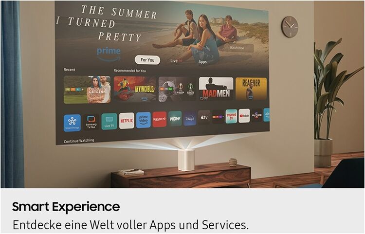 * Dieser Service funktioniert nur, wenn TV und Smartphone eingeschaltet sind. ** Erfodert den Download und die Installation der SmartThings App. *** Apple AirPlay 2 unterstützt nur einfaches Screen Sharing – ohne Touch-Funktion. **** Die Touch-Steuerung kann je nach Projektor-Setup und Oberfläche eingeschränkt sein.