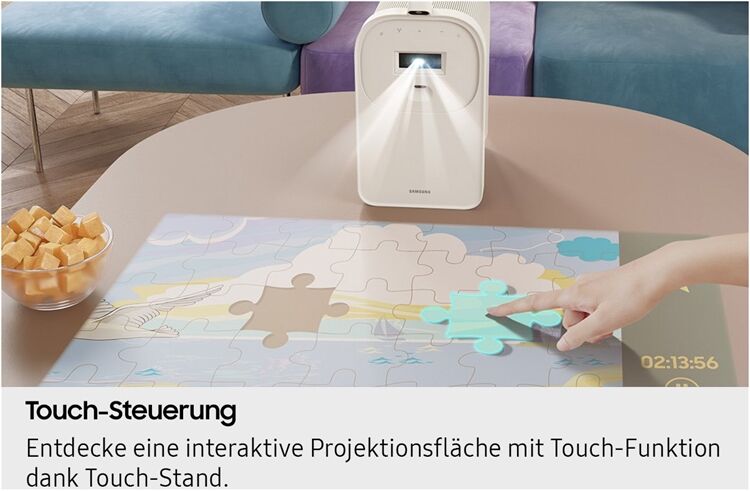 Schliesse einfach den Touch Stand an – und schon kannst du per Berührung die interaktive Oberfläche steuern. Tippe direkt auf deinen Tisch, Schreibtisch oder die Küchenplatte, um einfach durch Apps, Games oder Präsentationen zu navigieren. Suche dir mit dem Finger ein Spiel aus und interagiere direkt damit, wie wenn du Puzzle-Teile verschiebst.*
