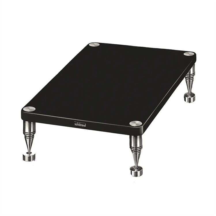 Die Hyperspike HY Base von Solidsteel vereint maximale Stabilität mit edlem Design. Der Fachboden bestehen aus veredeltem MDF mit glänzendem Lackfinish. Das Gestell aus rostfreiem Edelstahl (INOX) sorgt für Langlebigkeit und optimale Resonanzkontrolle.