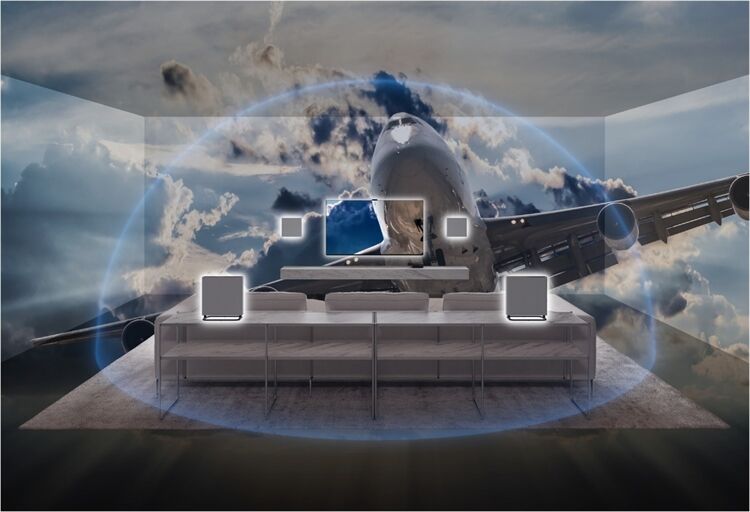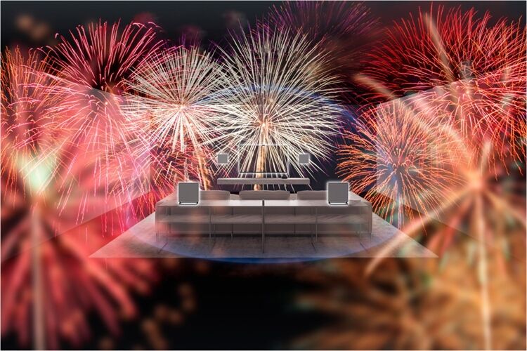 Es müssen keine Möbel umgestellt werden - zwei Mikrofone in jedem Lautsprecher messen ihre relative Höhe und Position, um mehrere Phantom-Lautsprecher zu erzeugen, die den Raum mit einem beeindruckenden Klang umschließen.